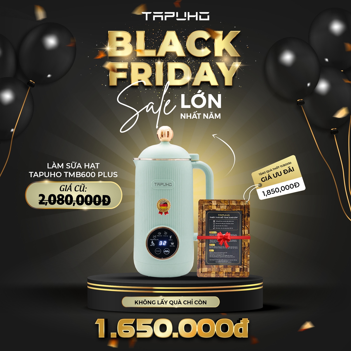 3. Combo Máy làm sữa hạt Tapuho TMB600 Plus + Thớt gõ Teak