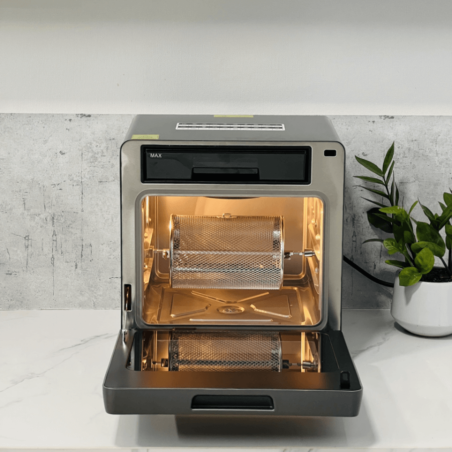 - Công nghệ chiên hơi nước Rapid Air: Công nghệ mới này giúp giảm đến 96% lượng dầu mỡ có trong thực phẩm đảm bảo các bạn sản xuất ra những món ăn không chỉ ngon miệng mà còn tốt cho sức khoẻ.