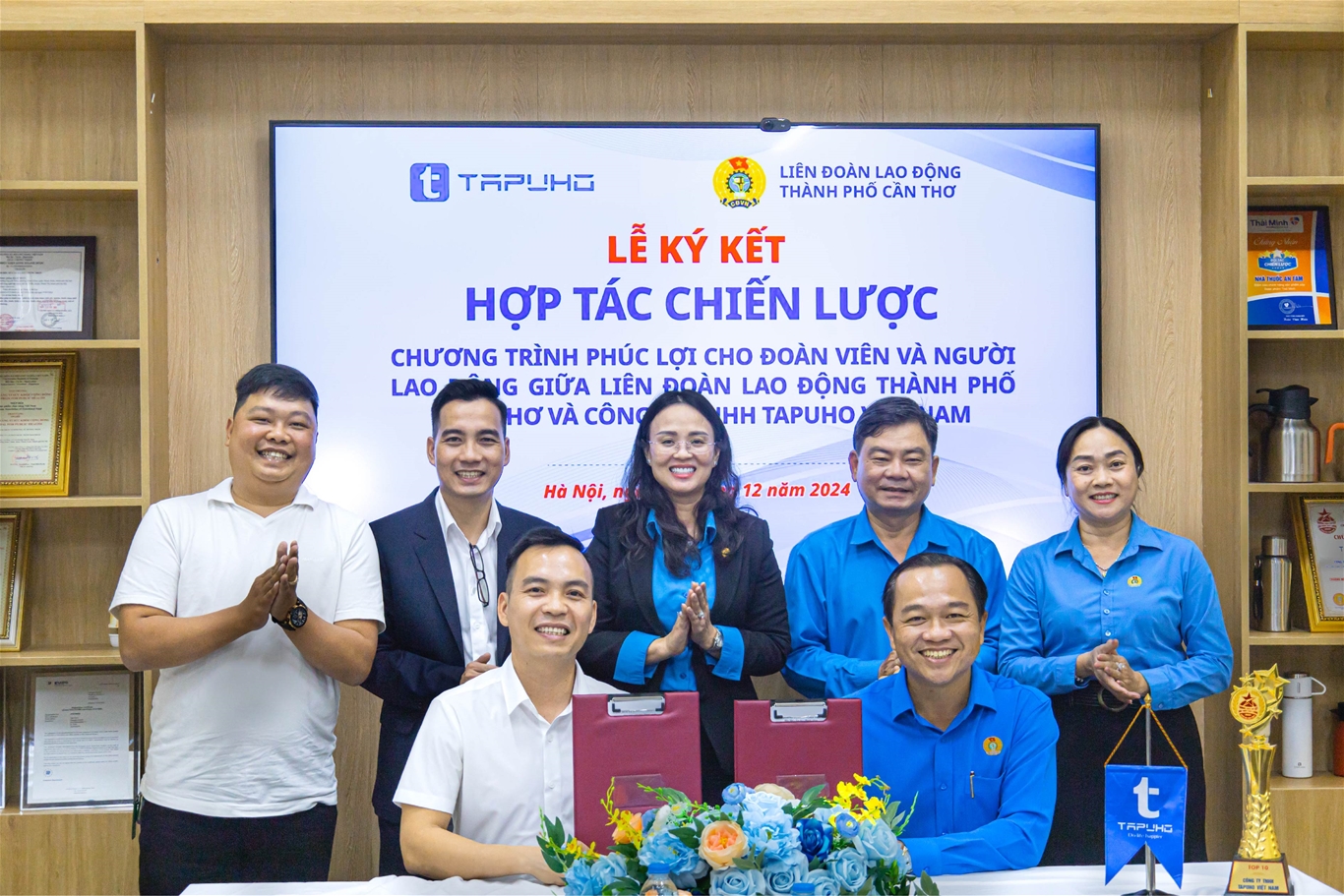 Ngày 3/12/2024, tại Hà Nội, Công ty TNHH TAPUHO Việt Nam và Liên đoàn Lao động TP. Cần Thơ đã chính thức tổ chức lễ ký kết hợp tác chiến lược về Chương trình phúc lợi cho đoàn viên và người lao động. Đây là một dấu mốc quan trọng, mở ra một giai đoạn hợp tác mới, góp phần vào sự phát triển bền vững của cộng đồng lao động và doanh nghiệp.