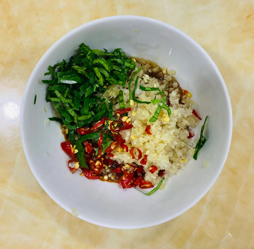 - Hành tím, hành lá, ớt sừng, sả, tiêu xanh, lá chanh