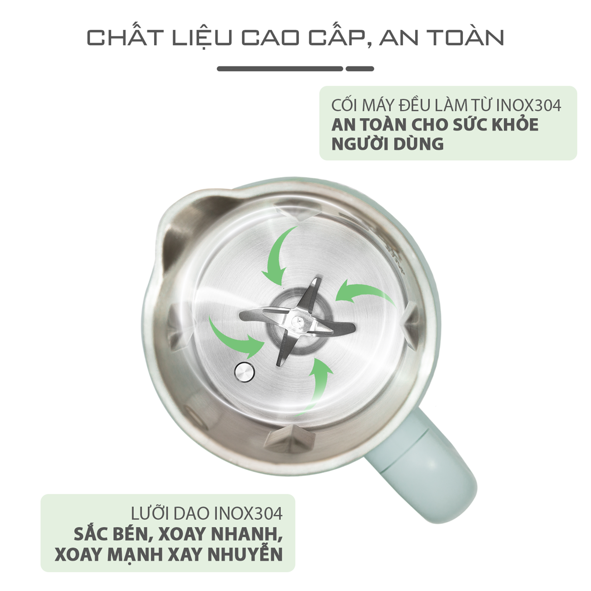 Đây là dòng máy làm sữa hạt được thiết kế đẹp mắt với màu xanh pastel ấn tượng. Máy có hình dạng như một chiếc ấm đun nước nên rất nhỏ gọn giúp tiết kiệm diện tích cho căn bếp tối ưu.