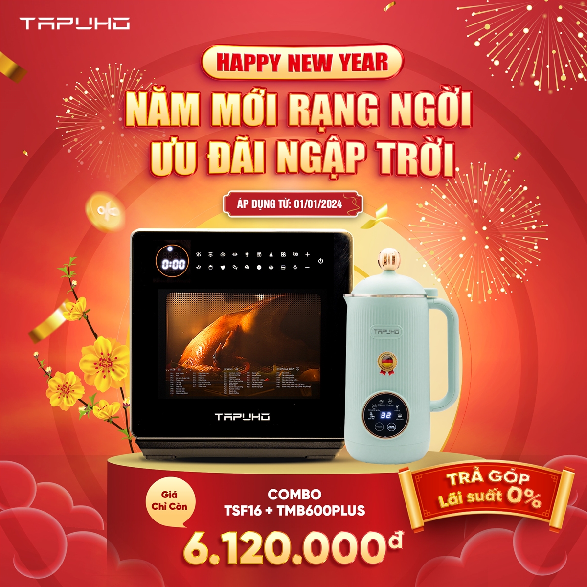 Dưới đây là thông tin về các sản phẩm giảm giá hấp dẫn của Tapuho Việt Nam trong ngày 01/012024:Combo nồi chiên hơi nước + máy làm sữa hạt mini TMB600 Plus