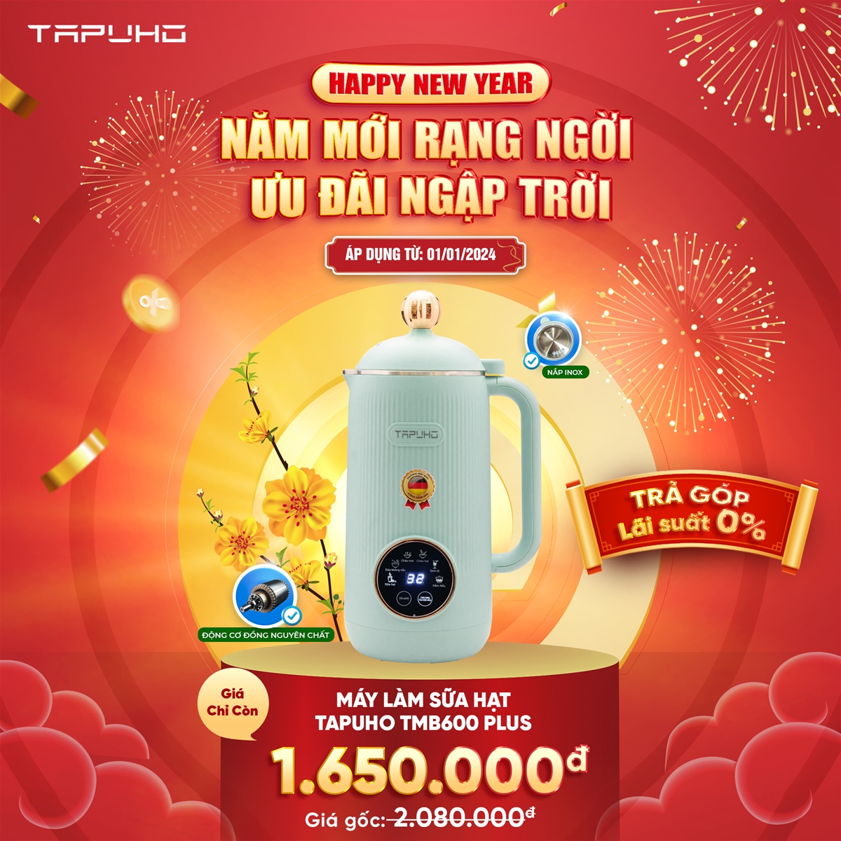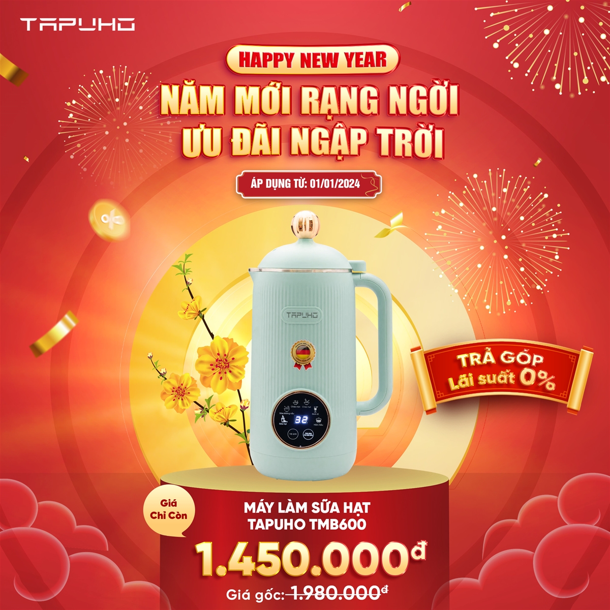Trong không khí hân hoan chào đón năm mới 2024, Tapuho Việt Nam xin gửi tới quý khách hàng chương trình khuyến mãi giảm giá hấp dẫn với hàng ngàn quà tặng hấp dẫn. Chương trình khuyến mãi như một lời tri ân với khách hàng đã quan tâm và lựa chọn sản phẩm của Tapuho trong năm qua.Với mong muốn mang đến cho người tiêu dùng Việt Nam những sản phẩm đồ gia dụng đạt tiêu chuẩn quốc tế. Trong năm vừa qua, Tapuho đã nghiên cứu và cải tiến mang đến cho khách hàng các sản phẩm đồ gia dụng thông minh với những tính năng đa dang.